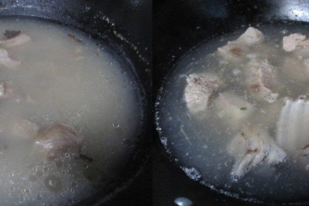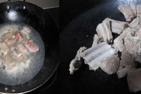 首先,我们要做的就是处理羊排。羊肉本身的腥味比较大,所以最开始要做的就是除腥味。新鲜的羊排砍好后,将其放进清水中浸泡五个小时左右,让排骨里面的血渗出来。洗净后在开水中煮沸,捞出来沥干。这样羊排就不会有很大的异味了。白萝卜也要切成块。
