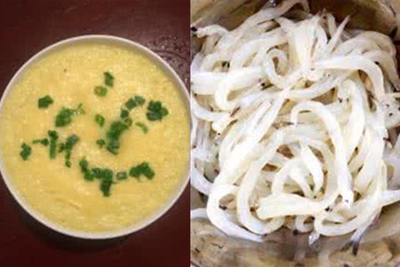 首先,先将银鱼干放在水中浸泡一段时间,把鱼干切成小丁状。银鱼干事先一定要浸泡软,不然吃起来会有点硬。