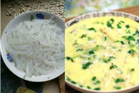 2、上面的银鱼蒸蛋使用的是新鲜的鱼,下面就为大家介绍如何用银鱼干制作银鱼蒸蛋。