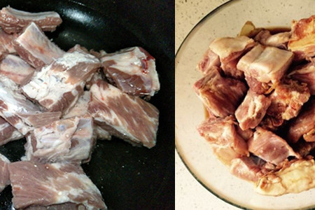 step2:另起锅,放入刚刚处理好的排骨,然后加入少量水,水的量应刚刚没过排骨,然后将锅盖盖上,蒸煮30分钟左右。