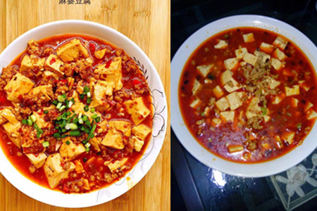 一日傍晚将打烊之时一位食客上门点名要吃牛肉炖豆腐,却不巧店中只剩下一小块牛肉,但客人又急需食用,只得改变了牛肉炖豆腐的做法作出了这道菜,没想到这道菜却是非常好吃,一传十十传百,吃的人越来越多,这道菜名气也越来越大,人们也将这道菜叫做“麻婆豆腐”了。