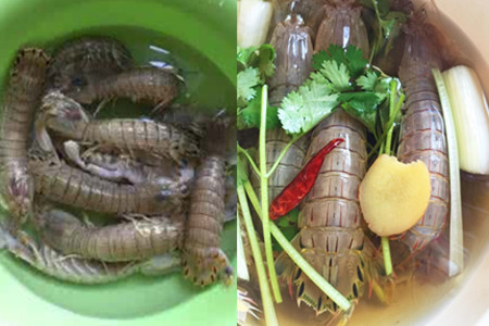 然后,将葱白和细姜丝、蒜泥放在一个碗里,加上些料酒、盐和适量的水进行均匀搅拌。把这些酱汁淋在处理好的皮皮虾上,腌制半个钟头左右。