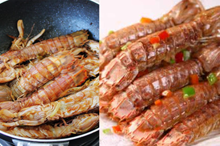最后,洗锅重现倒入新油,把葱姜蒜、辣椒段放入锅中爆香。把皮皮虾倒入里面,撒上少许的盐、胡椒粉、椒盐,加些料酒,接下来再加上适当的水,大火烧开收干汁就可以盛盘了。