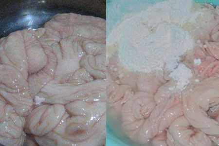 【正确的清洗方法】猪大肠由于表面上附着着油脂,里面又有黏黏糊糊的分泌物。