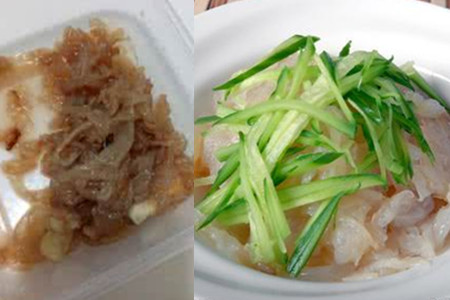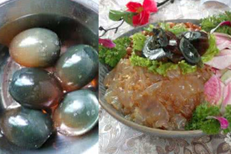 最后,把海蜇皮沥干水分,同皮蛋一起码在盘中,淋上之前调制好的酱料。就可以食用了。
