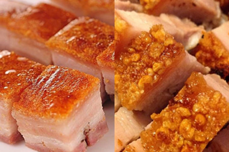 烤好之后拿出,将猪皮上的盐粒刷掉,再放进烤箱中烤制10分钟即可出炉。放凉之后切成块状就可以食用了。