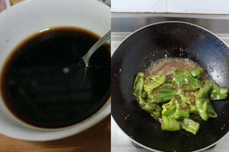 接着就是炒尖椒了。锅里放油适量,烧热后倒进豆瓣和蒜泥,迅速翻炒几下,再把我们之前煸好的尖椒放进去一起翻炒。