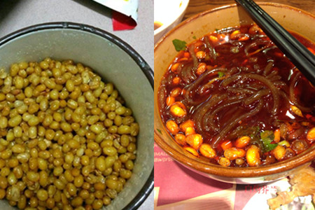 第三,炸黄豆。这是增加酸辣粉口感的不二秘诀,一口酸酸辣辣的红薯粉里,混着脆脆的黄豆,别提多爽口了。当然,实在没有黄豆的也可以用炒花生代替。