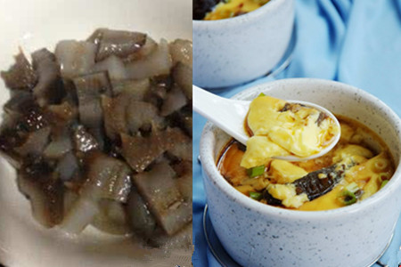 最后,把蒸好的海参块放在鸡蛋羹上,淋上些香油和酱油,撒上些葱花就可以食用了。