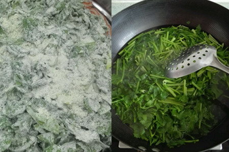 在这里需要注意的是,我们在焯叶子的时候不要煮过长的时间,因为这样容易把叶子煮烂。