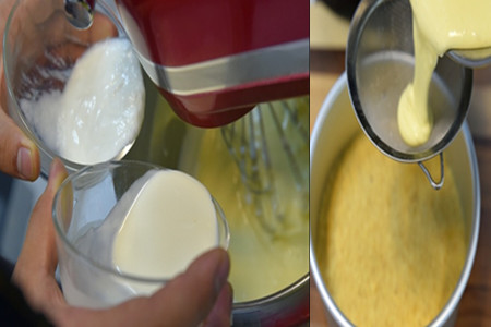 step5:放完鸡蛋后加入酸奶、淡奶油,步骤参考第二步,采用慢速搅拌,同时需注意的事,需要边搅拌边混合。
