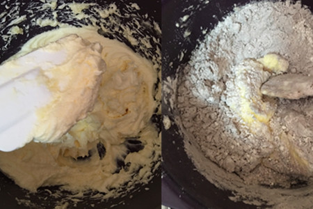 step6:对低筋面粉、小苏打、可可粉进行处理。将三者混合后进行过筛并把其加入黄油中,此时应注意黄油的量为全部黄油的三分之一。
