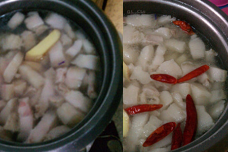 step5:水煮沸腾后,加入味醂、酱青和黑糖等辅助材料进行调味处理。