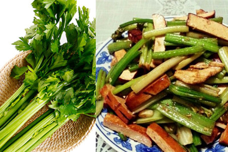 锅里面再重新倒入油,将芹菜和辣椒、香干放进去炒,等到大约8分熟的时候,加入之前炒好的猪肉,加一些酱油、盐、味精、耗油。翻炒一下就可以装盘享用了。【女物原创未经允许,谢绝转载!】