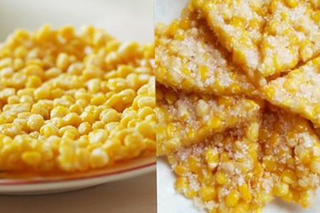 用小火煎制,要经常移动平底锅,使玉米粒受热均匀。再起一锅,倒入可以没过玉米粒那么多的油,烧热。等到油烧热后,将油倒入到将玉米烙的锅中。将火调至中火,将玉米烙炸至金黄就可以了。将炸好的玉米烙沥干油,切成小块装盘。再在它上面撒上糖粉就制作完成了。操作很简单,大家可以在家动手试试。玉米除了这种做法,其实还能有很多做法。