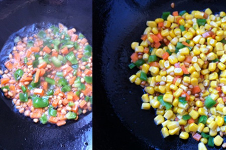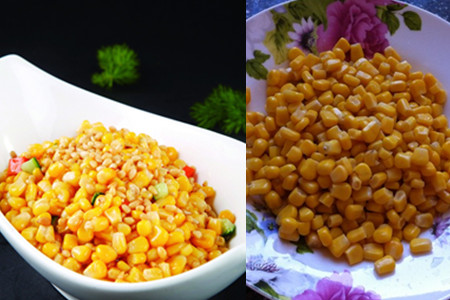然后,我们再将一罐玉米粒打开并倒入盘中备用。同时,我们还需要将胡萝卜洗干净,并将它切成丁状。我们最好可以切一些彩椒,这样不仅可以使这道菜看起来更好看,同时吃起来也会有清香的味道。