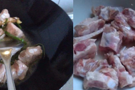 在锅里倒入大量清水烧开,将排骨放进去焯水去腥,去掉血沫。
