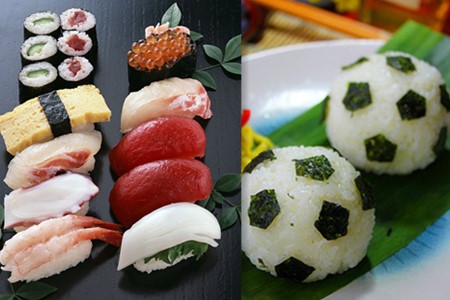 接下来介绍足球饭团的做法。需要的材料:寿司米饭、黄瓜、鸡蛋、蟹棒、海苔、寿司醋、食盐、植物油、水等。做法:首先一般的食用米和糯米以10:1的比例混合。再以一碗饭比一勺醋的比例混合饭和醋。将鸡蛋打散倒入锅中摊平煎熟。将黄瓜切丁用醋腌制5分钟左右。将所有材料切成丁以备后用。