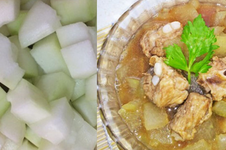购买回来新鲜的排骨将它切成大小均等的块状,用清水将血水冲洗干净将上面的水沥干净。冬瓜削皮以后将它切成方块状。