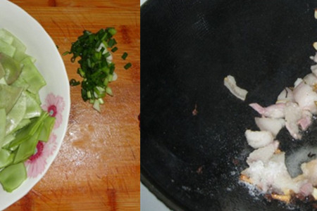 需要准备好新鲜的扁豆以及猪肉,扁豆去处两头以后,用刀将它切成段状。猪肉切成块状放在一旁备用。
