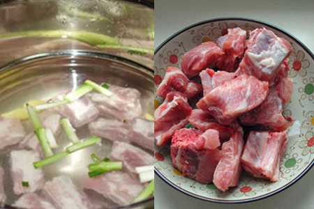 将猪排骨剁成小块,方便入口的大小即可,先在锅里添入适当的清水,把排骨放入,先煮五分钟,去去脏气,然后将排骨捞出,倒掉热水。