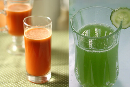 苦瓜青瓜汁:将苦瓜去籽洗净切小块同样青瓜去皮洗净切小块放入榨汁机榨制,这款蔬果汁味道稍微有点苦可以加入少量的白糖,对于要减肥的眉毛来说这款蔬果汁特别适合不仅减少脂肪堆积还能起到养颜的作用。
