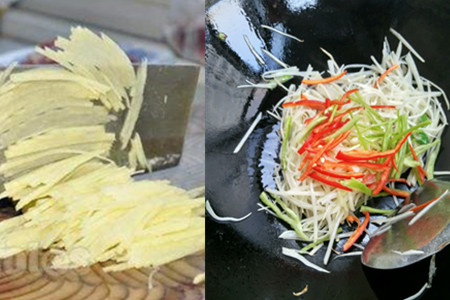 其次,辣椒要尽量选用比较辛辣的尖椒,去籽切成细丝,这样口感才会更有辣味。 中火将油锅烧热,将姜片放入爆香之后放入土豆丝,转大火翻炒一分钟即可倒入尖椒丝。