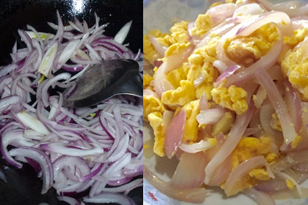 洋葱炒鸡蛋做法介绍:这是一道常见的洋葱搭配菜品。取两三个鸡蛋,打在大碗里搅拌成鸡蛋液,将洋葱去外皮去根去头,用清水冲洗一遍,然后用刀切成细长条,放在清水里浸泡可以减缓刺鼻的味道。