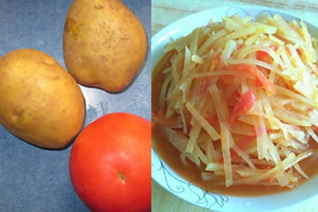 除了土豆丝炒鸡蛋,还有哪些蔬菜可以和搭配呢?这里推荐西红柿炒土豆丝,酸酸甜甜的西红柿加上清脆可口的土豆丝是非常好的组合,而且西红柿中有多种维生素,非常的有营养,所以喜欢吃西红柿和土豆的人一定不能错过。做法如下。