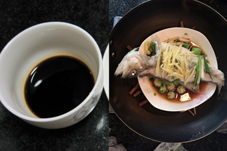 然后,我们把蒸好的鱼端出来,撒上准备好的葱丝,并把酱汁均匀的淋到鱼身上。