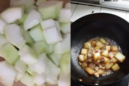 然后,在锅中倒入适量的油,油温加热至七八成时。往锅中倒入切好的冬瓜块,大火反复翻炒至冬瓜块开始变软。如果个人比较喜欢吃比较硬的冬瓜,不妨就少炒片刻。但是建议大家多炒一会儿,这样冬瓜吃起来既有味又香糯。