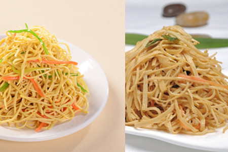 在这里需要注意的是,我们最好尽可能的将它切成细丝,因为这样会使它的口感更好,同时也可以更好的入味。接下来,我们可以再切出一些黄瓜或是胡萝卜,然后将切好的食材放入盆中。