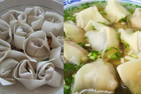 准备好馅料以后,我们就要开始包馄饨了。很多地方也把馄饨叫着抄手,它和水饺的区别就在于皮非常薄,所以包的时候要特别小心,以免露馅。