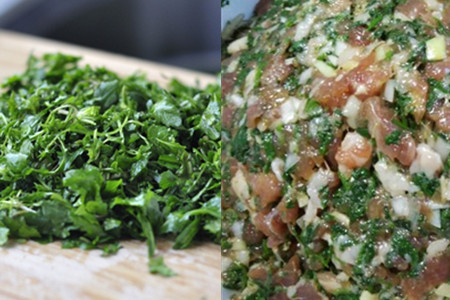 做荠菜馄饨,我们需要先把荠菜洗净,剁碎。荠菜基本都是贴地生长,泥沙比较多,所以清洗的时候一定要仔细。