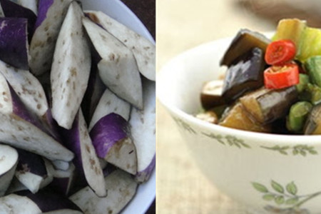 将茄子和豆角洗干净以后,用刀切成大小合适的块状。还需要准备一些辣椒和大蒜子。