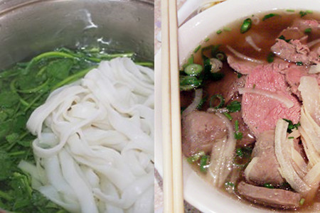 第四,河粉煮好后用冷水冲洗一下装入碗中,放下熟豆芽、辣椒碎、罗勒和牛腩片,浇上汤底即可。(可按个人口味入适量鱼露)【女物原创未经允许,谢绝转载!】