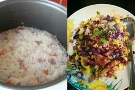 将腊肉和大米炒好了之后我们就盛出来放在电饭锅里加入适量的水,然后再按下电饭锅的煮饭键就好了。等到电饭锅跳到保温的时候,我们可以再焖一会儿这样味道会更好,要吃的时候我们可以撒上葱花,搅拌均匀就可以一饱口福了。【女物原创未经允许,谢绝转载!】