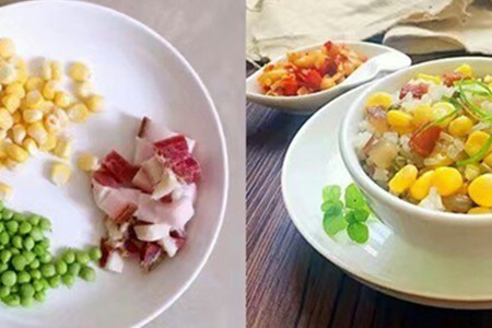 腊肉焖饭并没有说一定要指定的蔬菜来焖,它的配料可以根据自己的口味来选择。像小编就比较喜欢吃玉米豌豆腊肉焖饭,所以今天就给大家做一道玉米豌豆腊肉焖饭。做这个饭不需要其它很复杂的步骤,只需要有个电饭锅就可以轻松搞定。首先我们要准备的原材料有玉米、豌豆、腊肉、姜末和大米。接着我们要将腊肉切丁,大米清洗干净沥干水分备用。