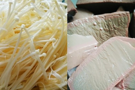 一、食材准备。主要食材鸭血、豆腐。配菜为生菜、金针菇等等。调料为豆瓣酱,豆豉酱,糖,油,盐,鸡精和胡椒粉,另外少不了辣椒、花椒、八角、酱油和芝麻油。