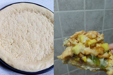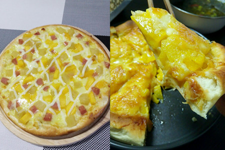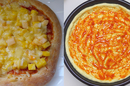 家常版菠萝披萨还是很简单的,而且菠萝可以去除水肿,有益于健脾胃,提高人的食欲。另外,制作面皮时,可以扎点儿细小的孔,这样烘烤的时候,利于空气排出,不至于下面的面饼鼓起来。如果在家一个人吃,9寸大的面饼就够了。人多的情况下可以试做12寸的披萨。【女物原创未经允许,谢绝转载!】