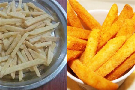薯条是一种小吃,很多洋快餐中都会有这道菜。现在外面买的薯条用的油都是反复使用过的,有的甚至已经发黑了,含有大量的致癌物质(有的黑心商贩甚至使用地沟油)。