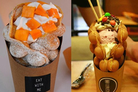 最好是先把冰淇淋提前做好,想吃的时候再做鸡蛋仔,用大小合适的纸杯放鸡蛋仔,中间添上冰淇淋和新鲜水果,再加上一些果酱或是坚果碎,一个冰淇淋鸡蛋仔就完成了。既能尝到奶香浓郁,香软可口的鸡蛋仔,也可以体验冰凉爽滑的冰淇淋。【女物原创未经允许,谢绝转载!】