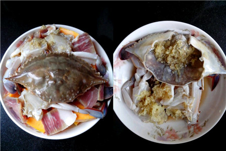 以下是我们要准备的材料:新鲜的梭子蟹一只,南瓜100克,食用油、食盐、大葱和生姜等适量。