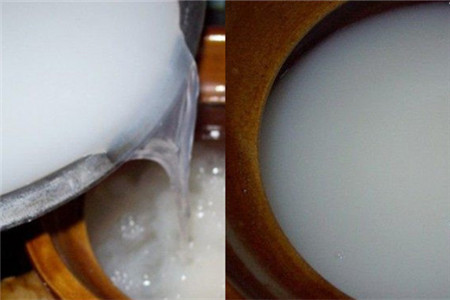 等到水开过了三分钟左右,将米汤倒出来使用。