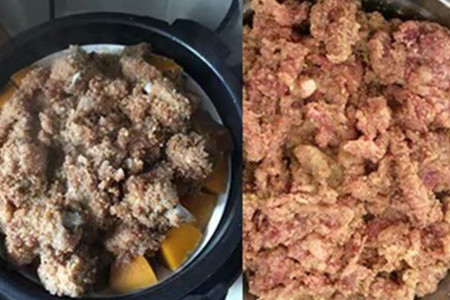 买蒸肉粉的时候可以根据自己的口味选择五香的或者是辣的,蒸肉粉和五花肉搅拌均匀了之后,可以放进高压锅里面蒸,因为高压锅蒸的时间会比蒸笼来的快一些,而且蒸出来也非常的软糯。在高压锅里蒸一个小时左右即可起锅,起锅的时候可以撒上一些葱花。【女物原创未经允许,谢绝转载!】