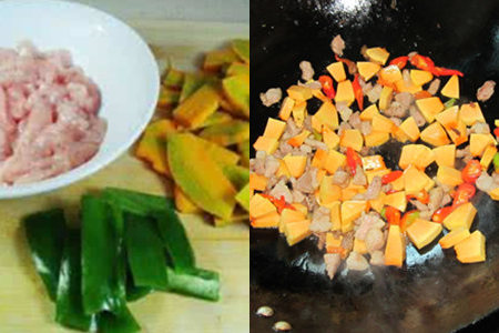 第二种做法是南瓜炒肉,满足食肉星人的喜好,鲜甜营养。