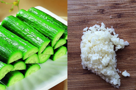 先将它清洗干净,同时再沥干水分,并且将它放到菜板上切成厚片。在这里需要注意的是,尽量不要将它切得太薄,否则会影响这道菜的口感。我们还需要准备一些蒜头,将它们切成蒜末备用。同时,我们再拿出陈醋和生抽等调味品倒入切好的黄瓜上面,并用筷子将它们搅拌均匀,再将准备好的蒜末倒入碗中。蒜末不仅可以提味,同时还可以预防感冒。