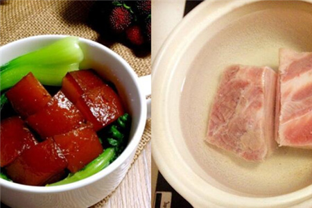 将砂锅放入煤气灶上开大火加热,等沸腾后转小火慢炖1个小时。等肉变熟后加入冰糖,再煮半个小时。这个时候有一个关键步骤:将肉块全部进行翻身,将肉皮全部朝上摆放,在闷煮30分钟。