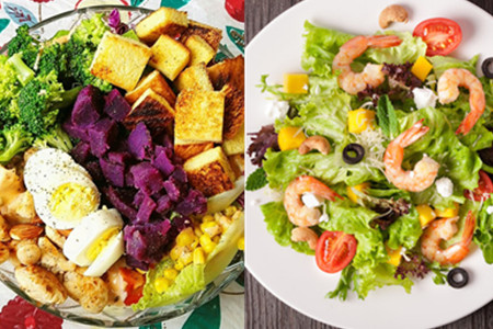 高人气水果沙拉之一:紫薯蔬果沙拉。所需的食材包括紫薯、有机生菜、玉米粒、青瓜、西兰花、西瓜、火龙果和圣女果。把生菜铺底,依次放入食材,再淋上沙拉酱,紫薯蔬果沙拉就做好了。这款沙拉的特色是加入了紫薯,热量不高,却能增加饱腹感,适合爱美想减肥的女性。
