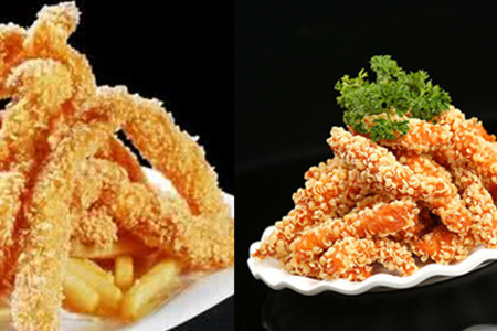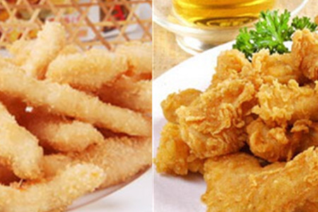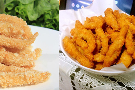 把每条鸡柳条都均匀的沾裹上淀粉,可以在淀粉里打个鸡蛋,味道会更鲜美。裹好淀粉后再撒上一层面包糠。然后可以准备下锅炸鸡柳了,锅内放入适量油,等待油温升高时放入鸡柳,注意不要被烫到。一边放入鸡柳一边搅拌,防止鸡柳炸过火。